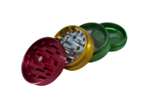 גורס מתכת 4 חלקים בצבעי ראסטה עם רשת ותא איסוף לאבקנים בגודל 50מ"מ. בעל שיניים מאסיביות וחורים מרובים לגריסה קלה ומהירה. מגיע עם כפית לאיסוף אבקנים.