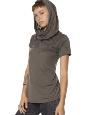 חולצת טי שירט לנשים מבית Plazma lab בגזרה מיוחדת ומחמיאה עשויה מ 100% כותנה סרוקה באיכות גבוהה עם קפוצ'ון.
