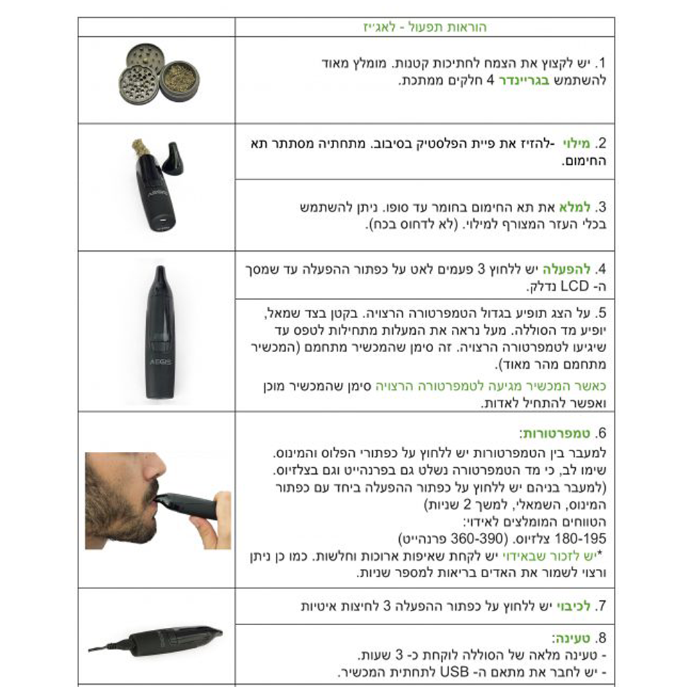 האג'יז נועד לשימוש עם צמח יבש בלבד.
