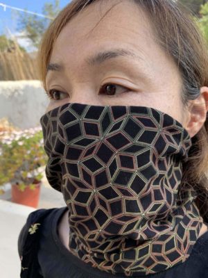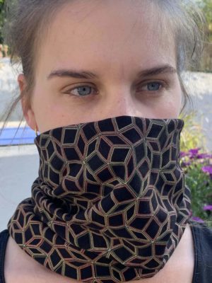 מסיכת פנים (יכולה לשמש גם כצעיף,סרט לשיער) ייחודית מבית symbolika בהדפס משי איכותי ומקורי.
